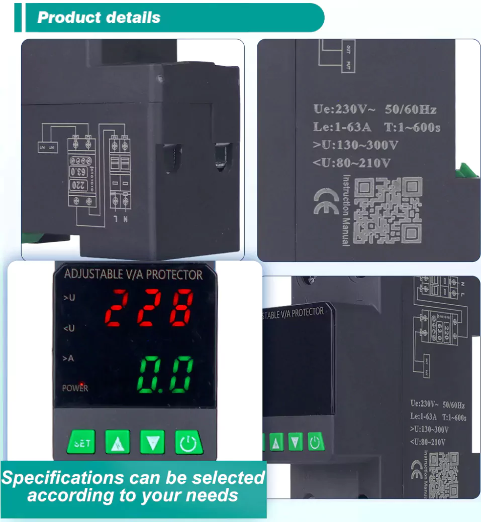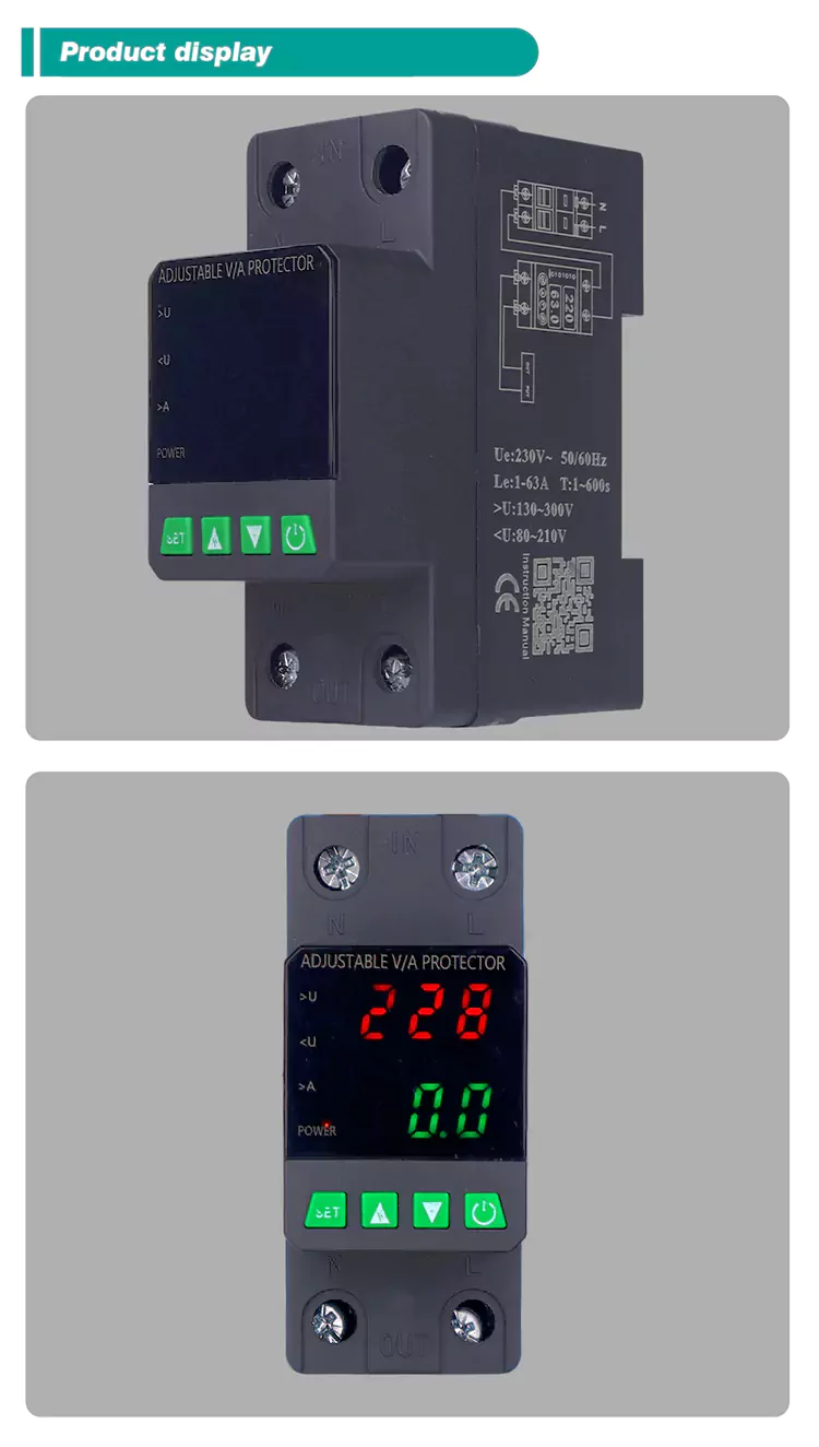 디지털 디스플레이가 장착되어 있으며 수입 모듈 식 전자 부품으로 제조 된이 제품은 신뢰성과 성능이 높습니다. 보호기는 비정상 전압 (예 : 과전압, 저전압 또는 그리드 변동) 동안 전원 공급 장치를 자동으로 빠르게 절단하고 전압이 정상으로 돌아온 후 전원 공급 장치를 복원합니다.