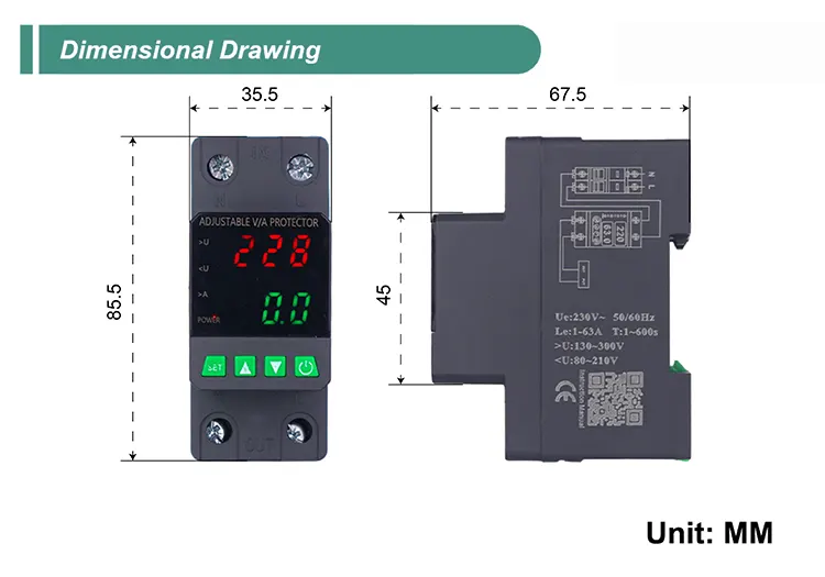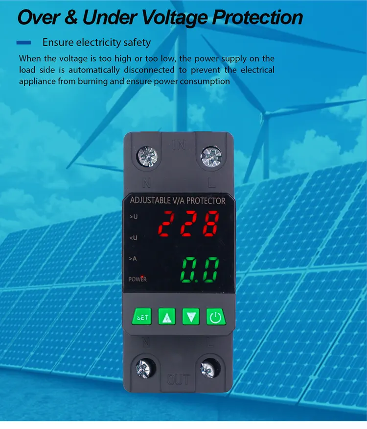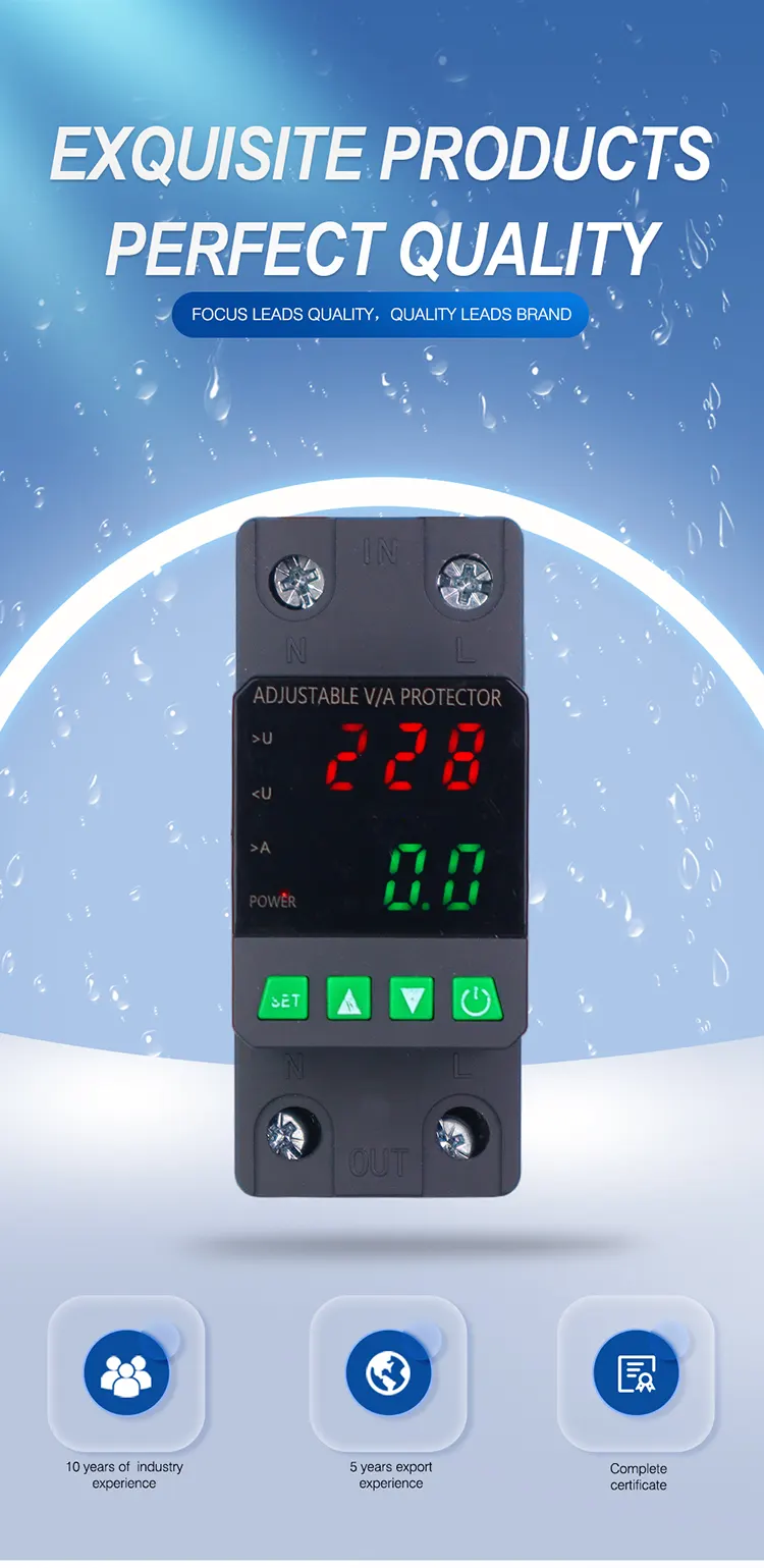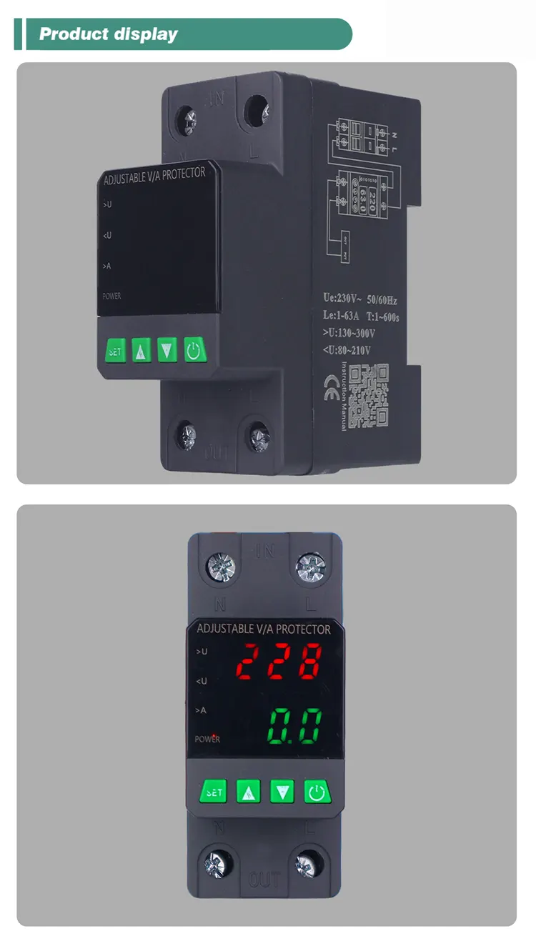 4. 듀얼 디스플레이 전압 보호기는 쉽게 트랙 설치를위한 모듈 식 디자인을 특징으로하여 외관과 기능을 향상시킵니다.