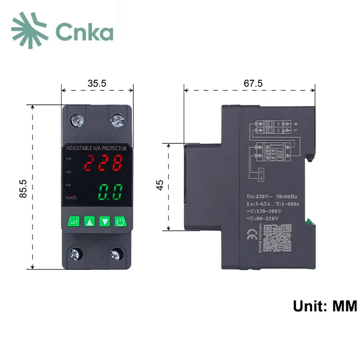CNKA는 브랜드의 듀얼 디스플레이 전압 보호기의 도매를 제공하는 잘 알려진 중국 공급 업체입니다. 이 장치는 정격 전류가 63A 인 단일 상 AC 220V, 50Hz 회로를 위해 특별히 설계되었으므로 주거 분배 상자 또는 전선을 단일 위상 장비에 공급하는 전선을 보호하기위한 이상적인 선택입니다.